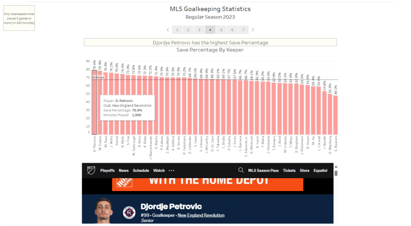 Major League Soccer Regular Season 2023 Goalkeeping Stats